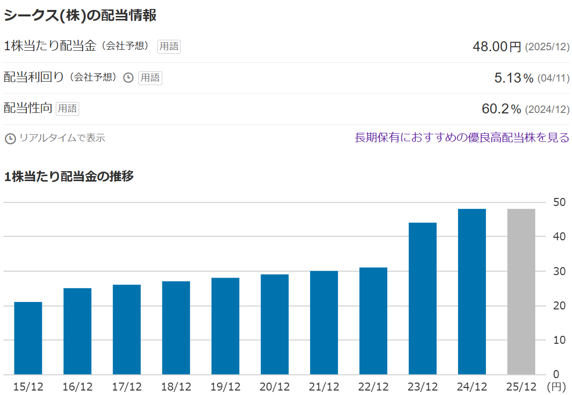 シークスは業績はよく、配当も安定しています。