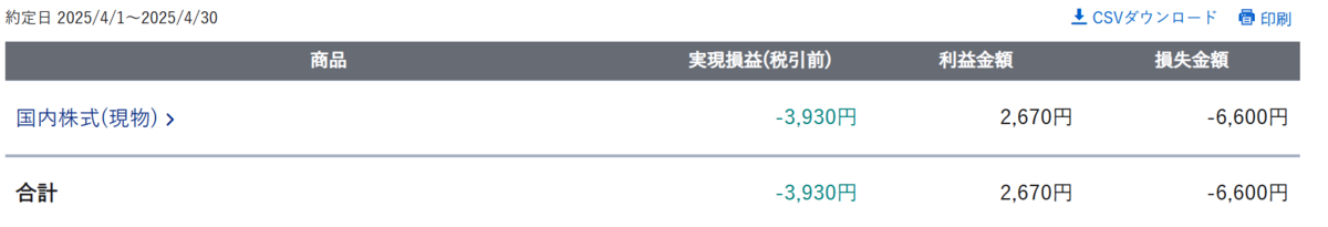 4月中の損益